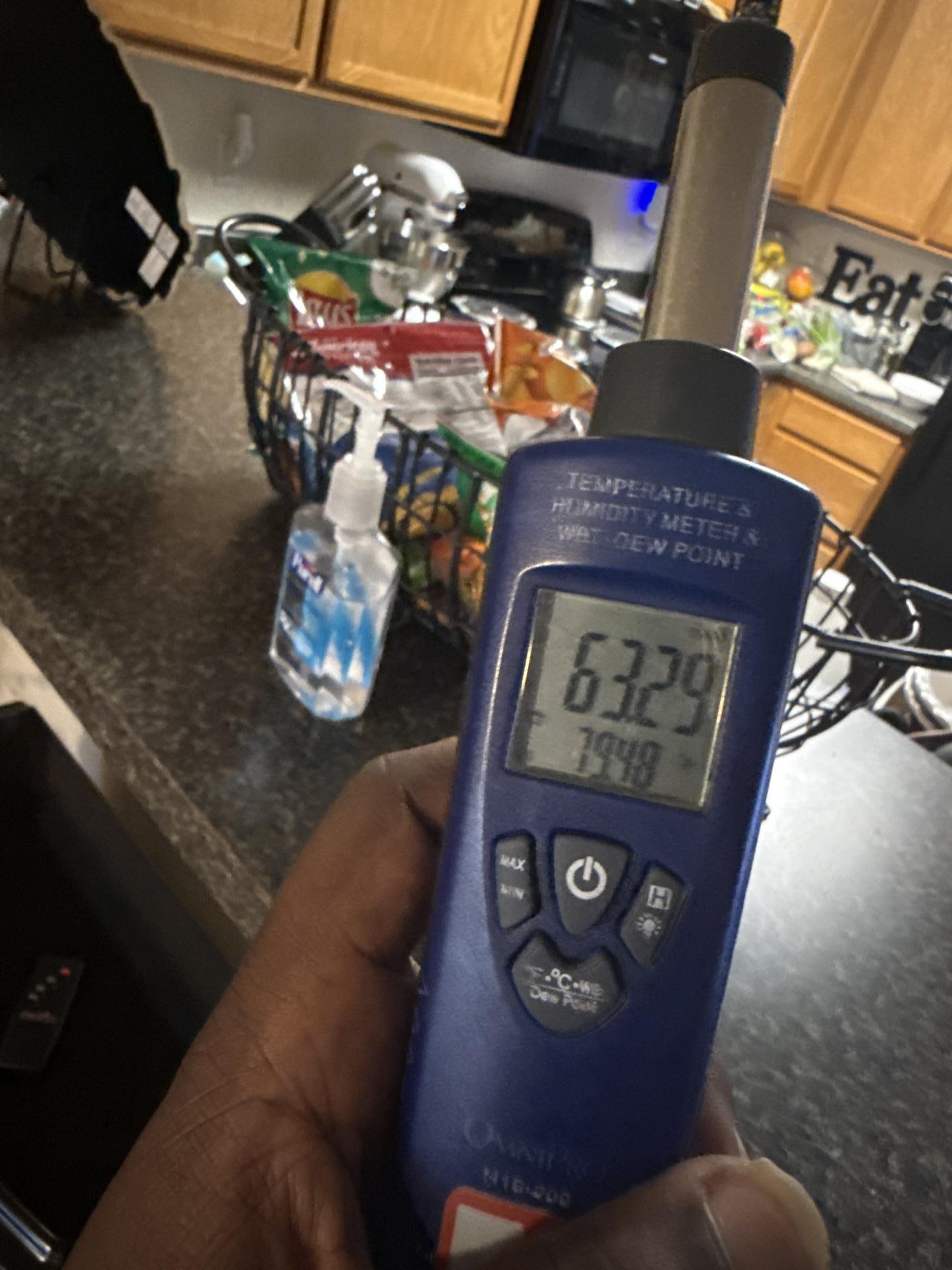 Using a digital meter to verify that moisture levels have returned to normal after the structural drying process.