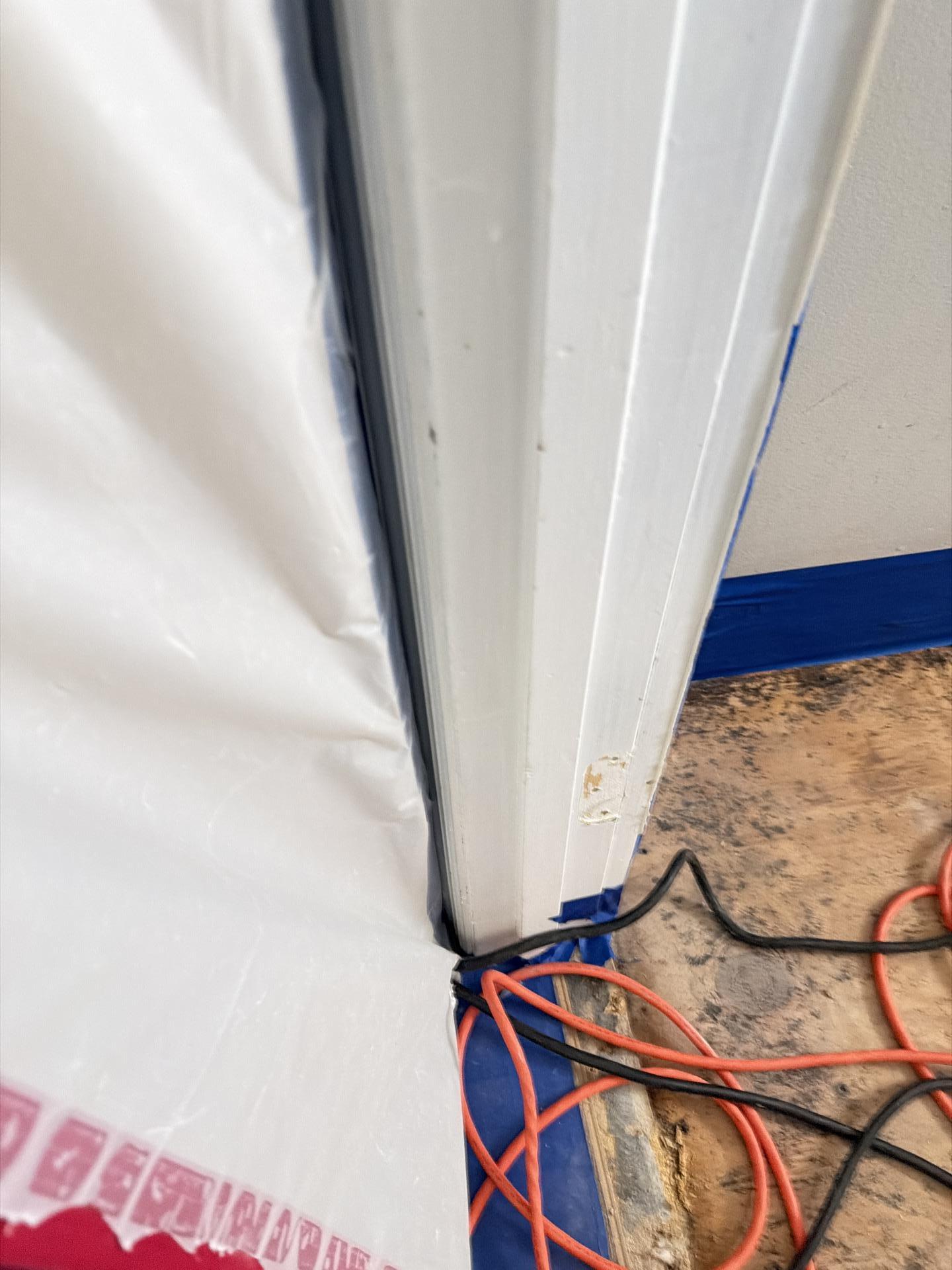 Advanced containment and floor protection installed during a sewage remediation project. Our restoration process includes isolation of affected areas to prevent cross-contamination and ensure thorough deep cleaning