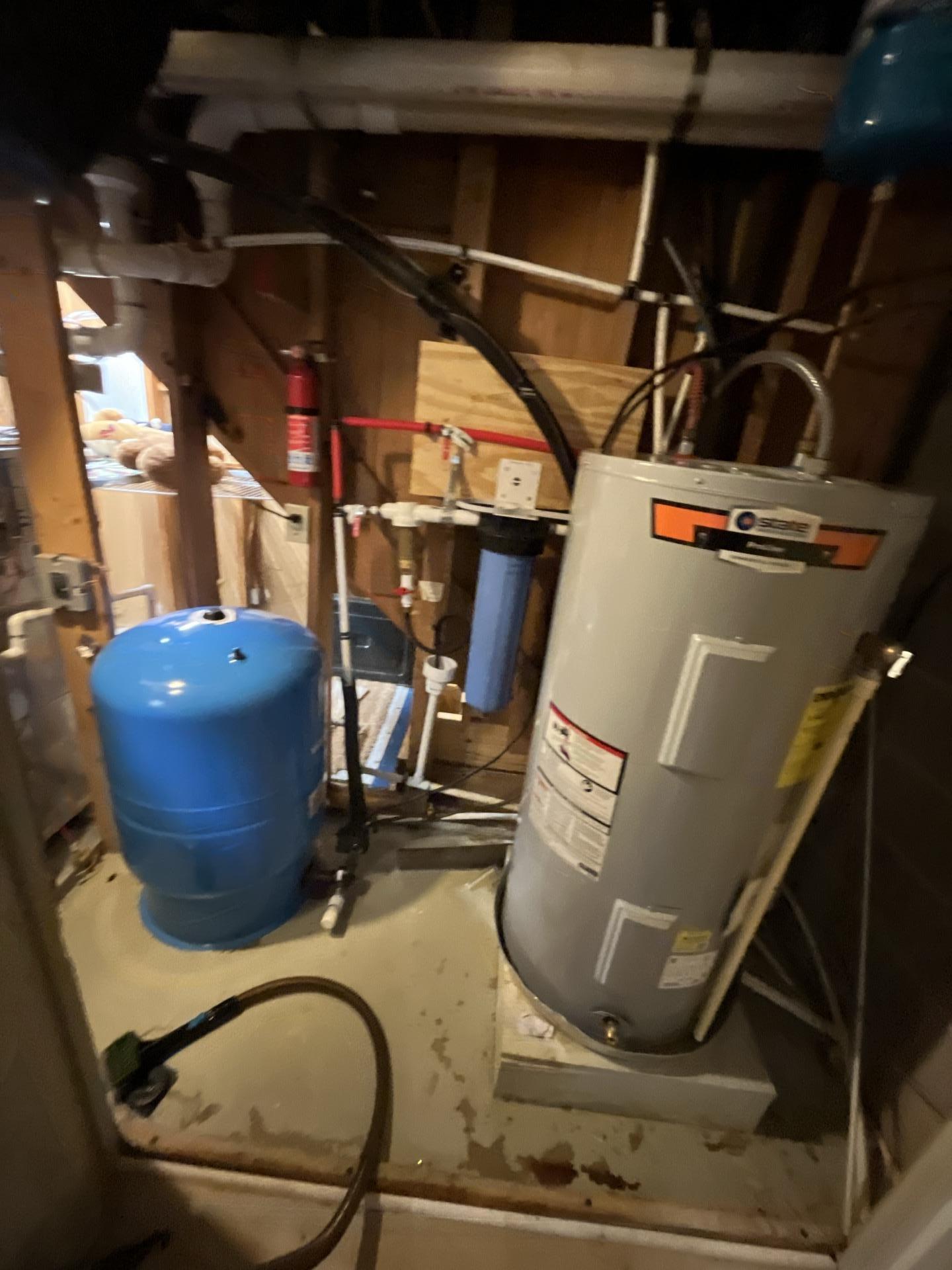 Water heater and plumbing in an HVAC or utility closet, showing potential source or affected area for water damage restoration.