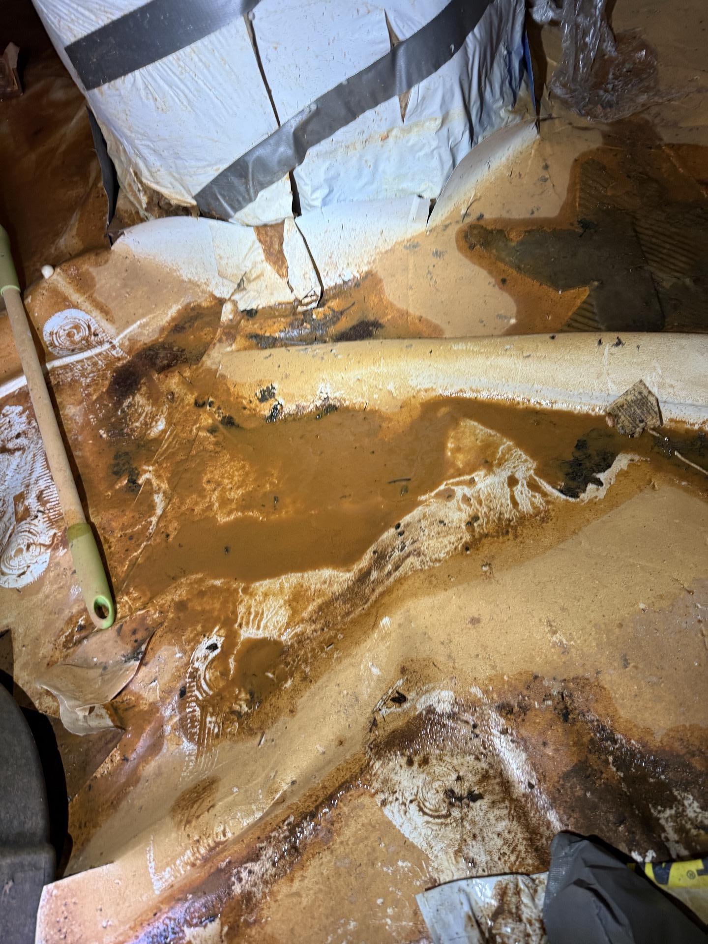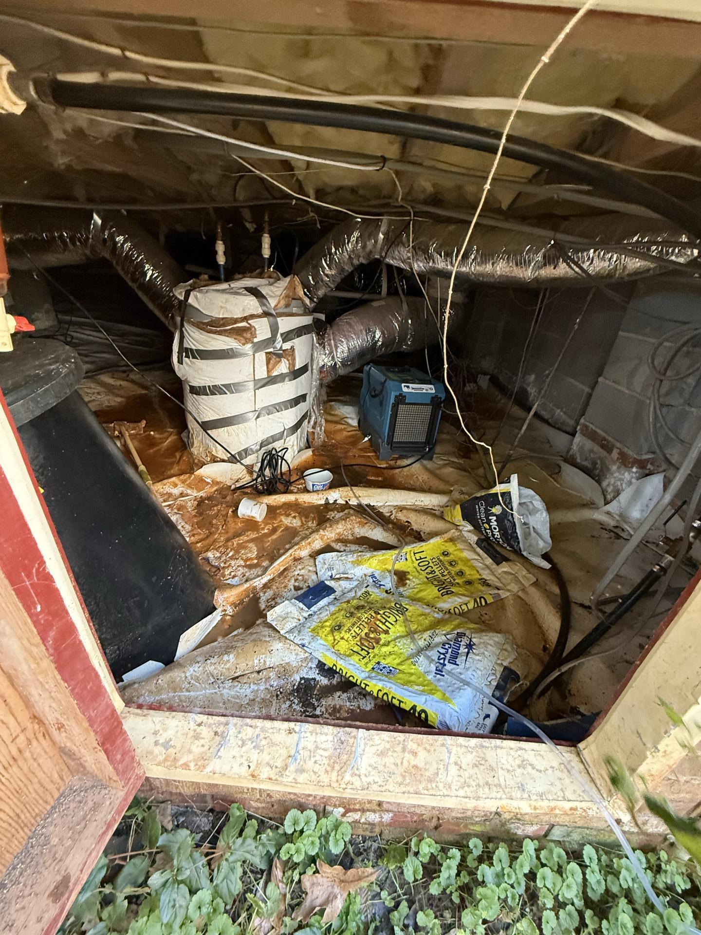 The customer reported significant water damage in their crawlspace, leading to standing water and mud accumulation.