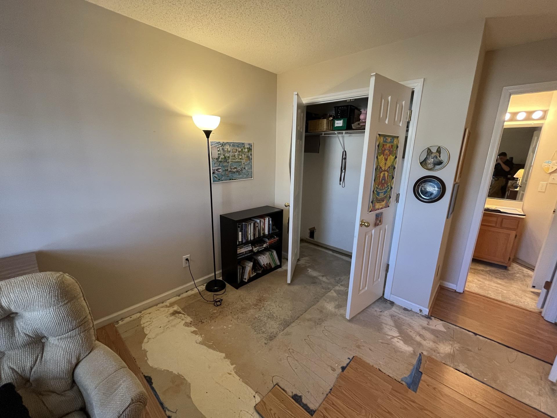 Adjacent room with flooring removed due to water damage, prepared for restoration by RestorePro.