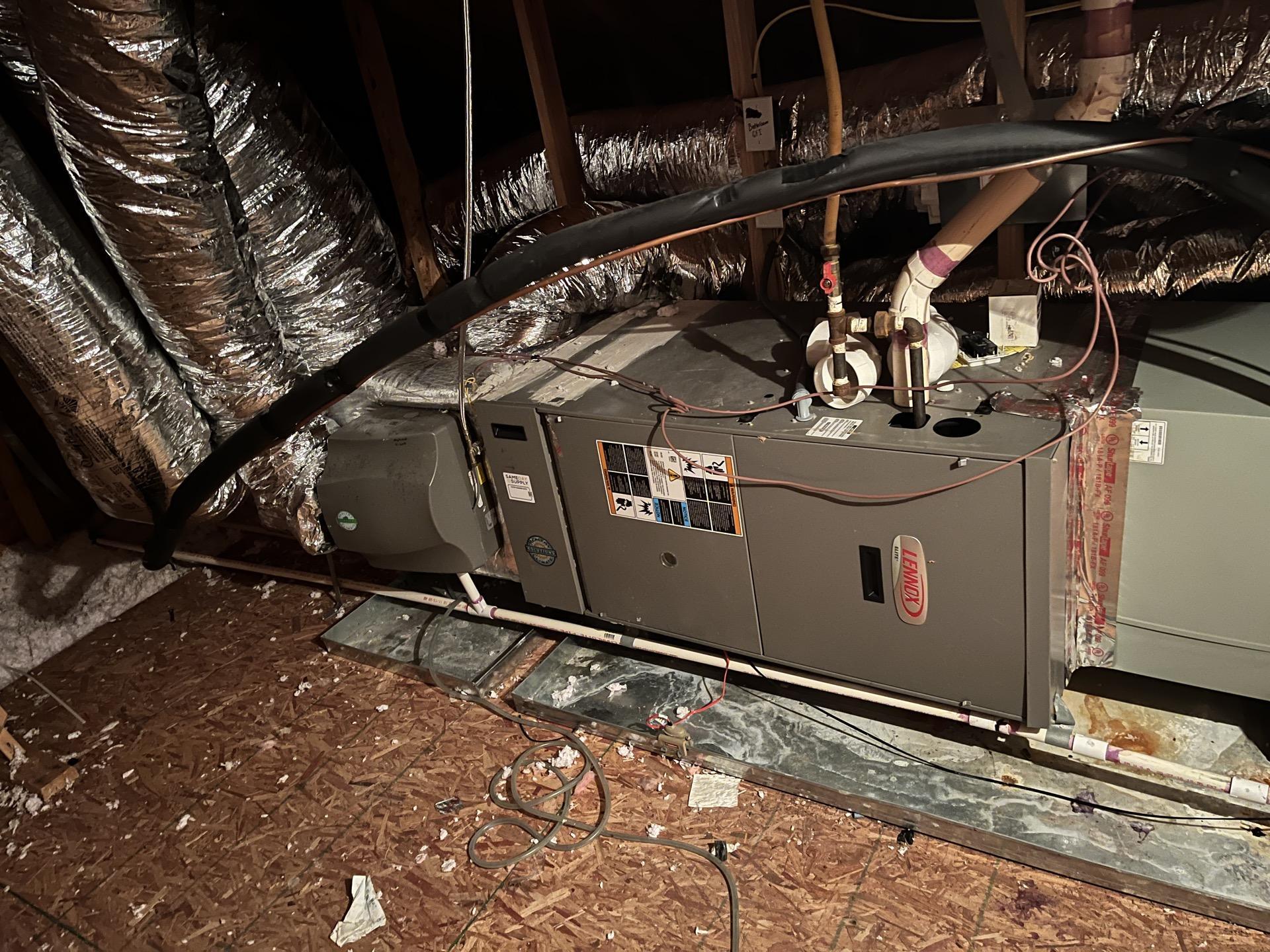 The customer experienced significant water damage inside their house, affecting multiple rooms including the kitchen, living room, and possibly bedrooms with dark hardwood floors.