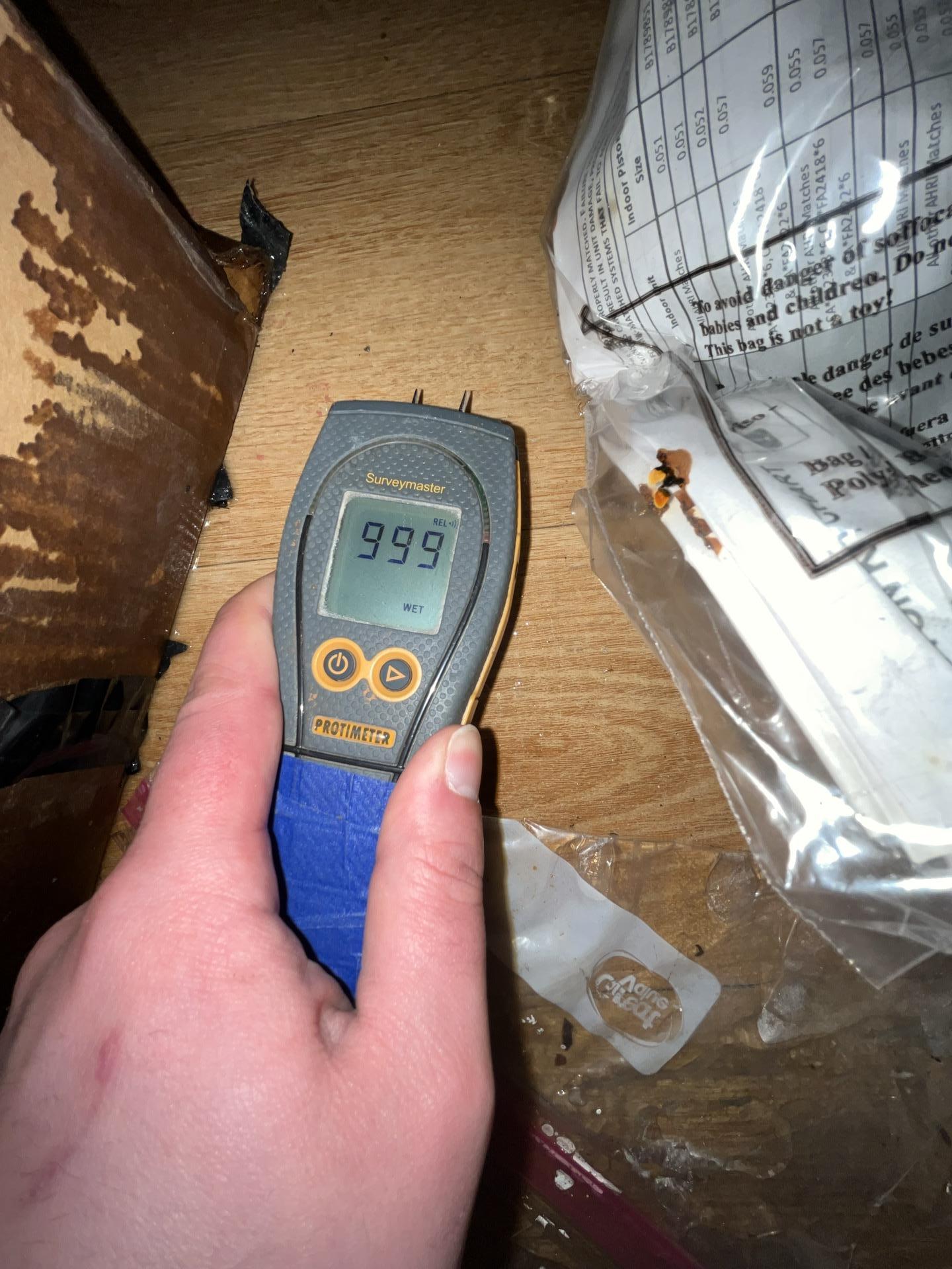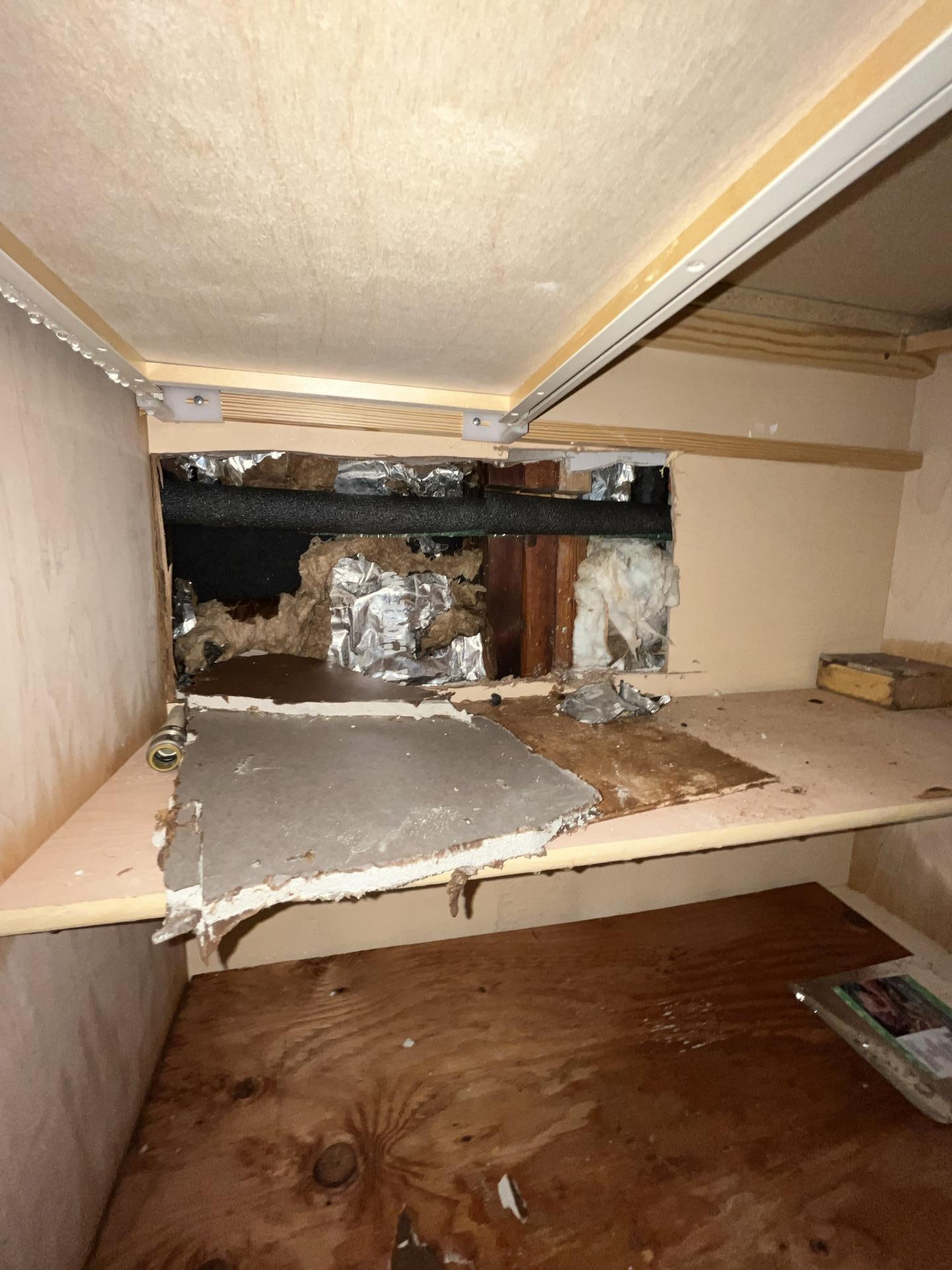 Following the water loss from the burst pipe, comprehensive moisture mapping was conducted across all affected areas in both Unit A and Unit B. Emergency water extraction was performed to remove standing water. Targeted demolition was carried out to remove severely damaged materials, including swollen lower kitchen cabinets, vanities, saturated drywall, and baseboards in the kitchens, bathrooms, and living rooms of both units, especially around the pipe burst source. Advanced drying equipment, including commercial air movers and industrial dehumidifiers, was strategically deployed to thoroughly dry all LVP flooring, underlying slabs, and structural components. Contents within the packed closet in Unit B were carefully manipulated and dried. Continuous monitoring of moisture levels was maintained to ensure complete drying and mitigate the risk of mold growth and further structural damage.