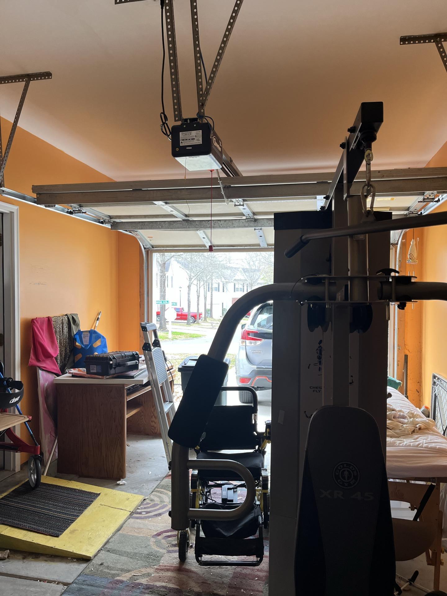 The customer experienced water damage, evidenced by significant water stains on the garage ceiling.
