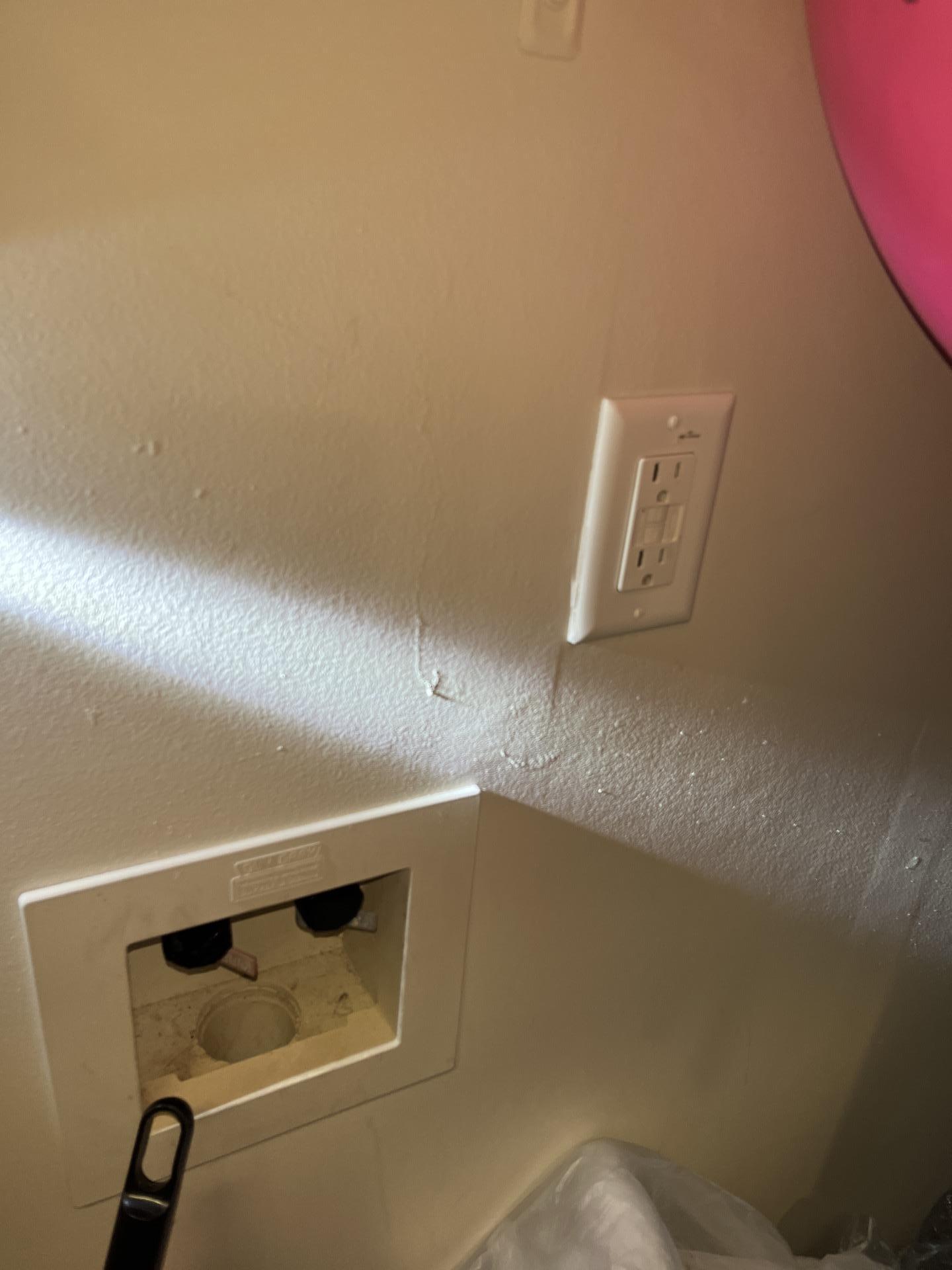 The customer experienced significant water damage within their property, evidenced by visible staining and warping on interior walls, particularly in a bedroom and around a utility area. The damage likely originated from an exterior source, potentially a compromised window seal or brickwork.