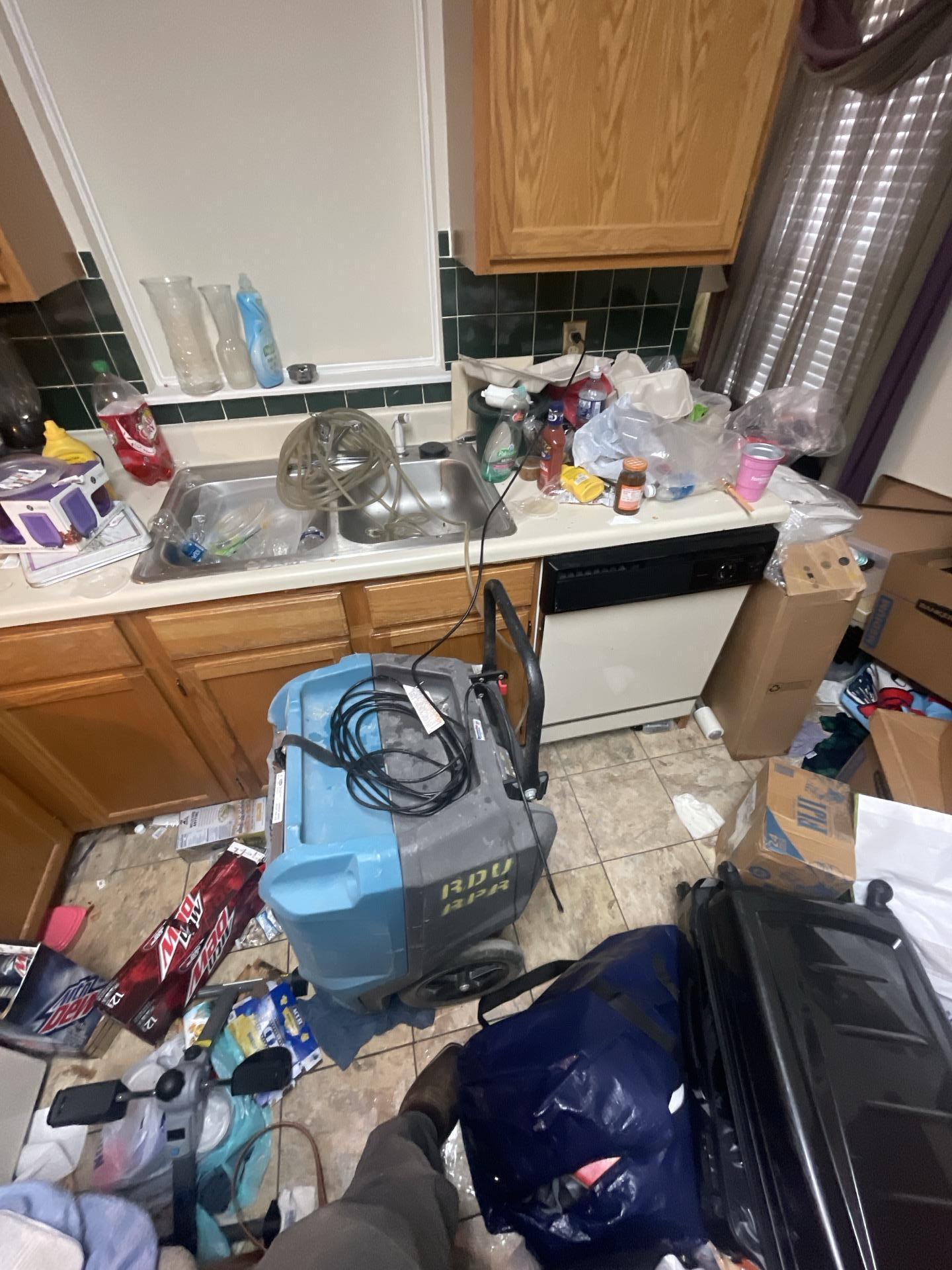 The customer contacted us to address a residential water damage emergency involving a leak that impacted both the kitchen area and the utility closet. The situation required immediate professional intervention to prevent structural deterioration and mold growth in high-traffic areas and around sensitive electrical appliances and water heating systems.