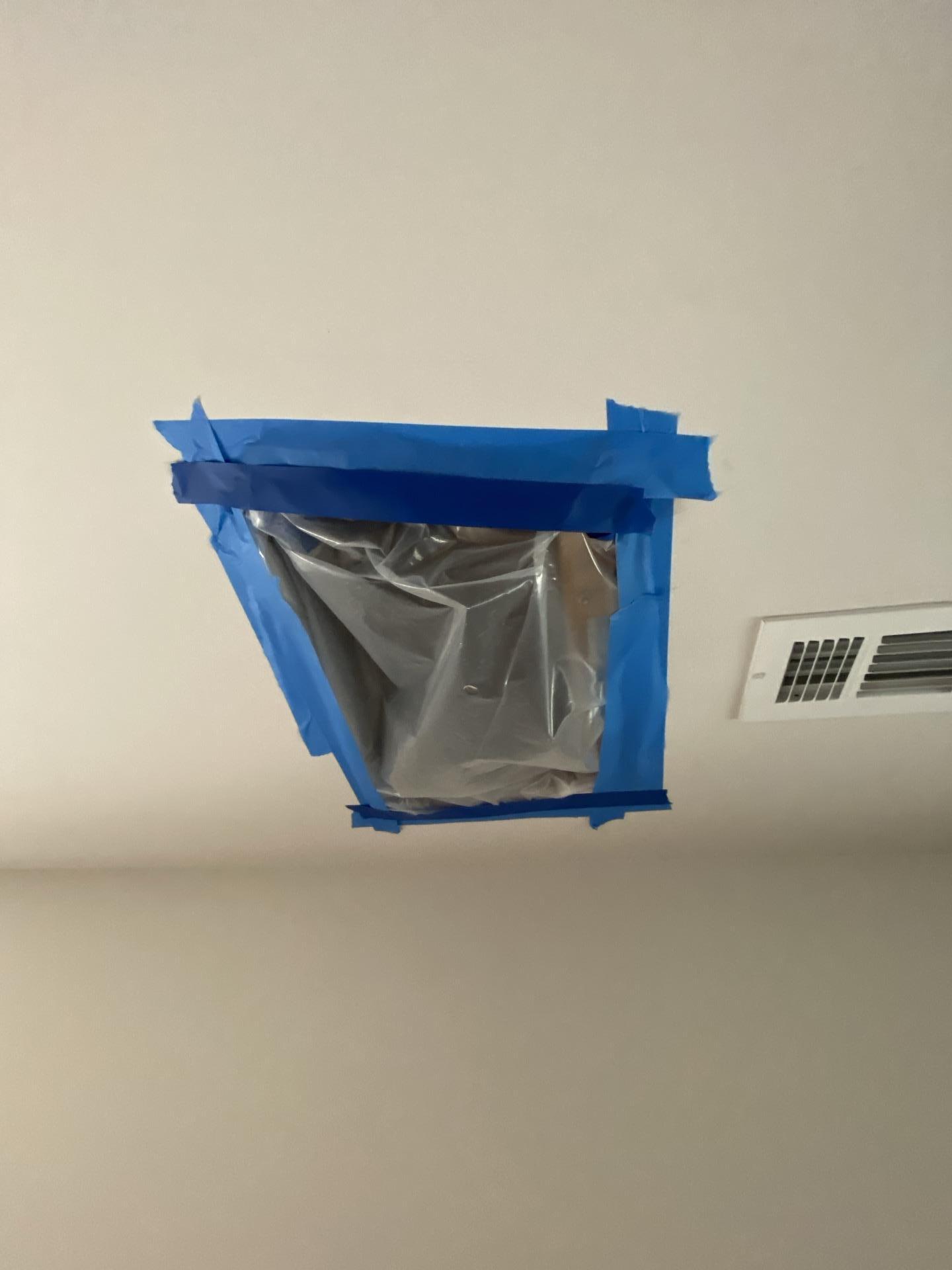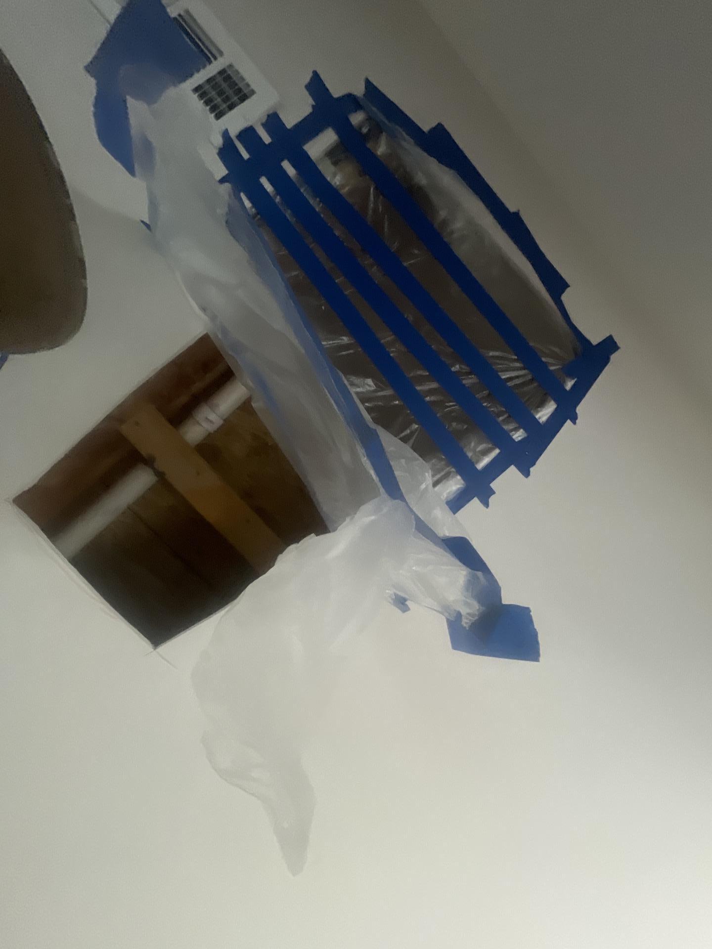 We implemented a professional water damage restoration and structural drying plan. Our team performed a controlled demolition by removing the damaged section of the ceiling drywall to access the plumbing and saturated subfloor. We isolated the area with plastic containment barriers to prevent debris migration. Once the plumbing repair was verified, we utilized high-velocity air movers to dry the wooden structural members and treated all exposed surfaces with antimicrobial agents to ensure a safe and moisture-free environment for reconstruction.